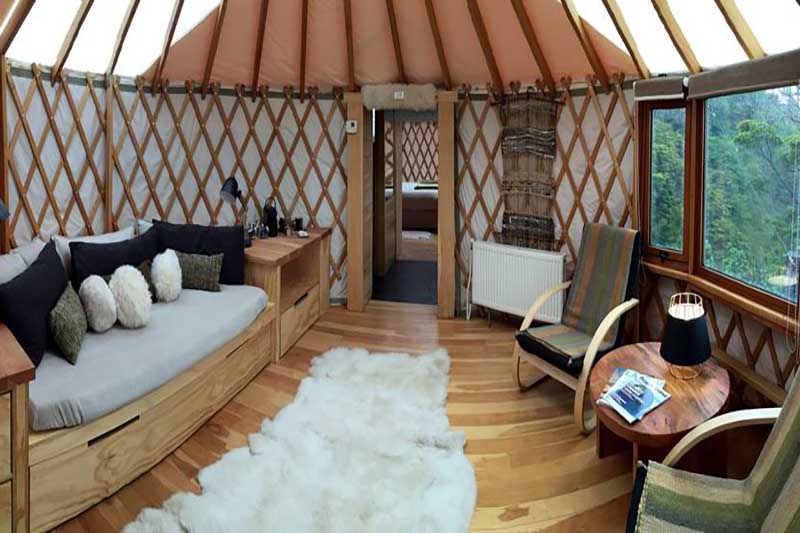 Patagonia Camp cuenta con 18 “yurts”, cómodas carpas circulares totalmente independientes.Cada yurt cuenta con baño y terraza privada y está completamente equipado con camas dobles (todas puedes ser King o twin), sistema de calefacción central y decorado finamente con tejidos y muebles fabricados por artesanos locales.Todos poseen una cúpula central que le permitirá ver las espectaculares y cambiantes nubes de Patagonia y las hermosas estrellas.